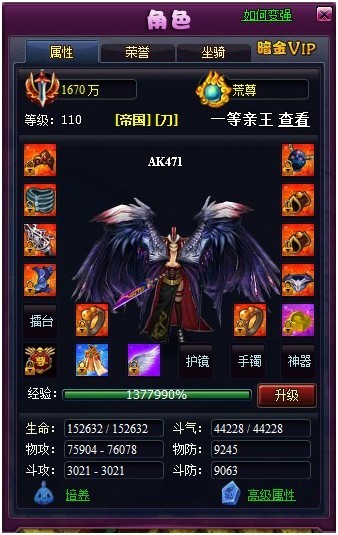 2、 优化了游戏中二级界面的风格,并对【角色】界面进行了大幅度调整。