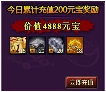 11、 调整了每日累计充值奖励内容,取消每日累计充值奖励中2000元宝的奖励,增加每日累计充值200元宝的奖励内容。