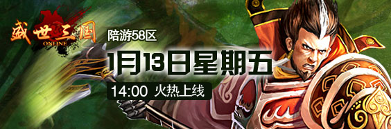 陪游《盛世三国》58区将于1月13日下午14:00震撼开启,与此同时,我们还为各位玩家准备了丰富的活动和好礼,助英雄们驰骋沙场!